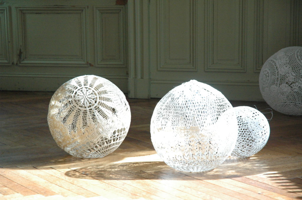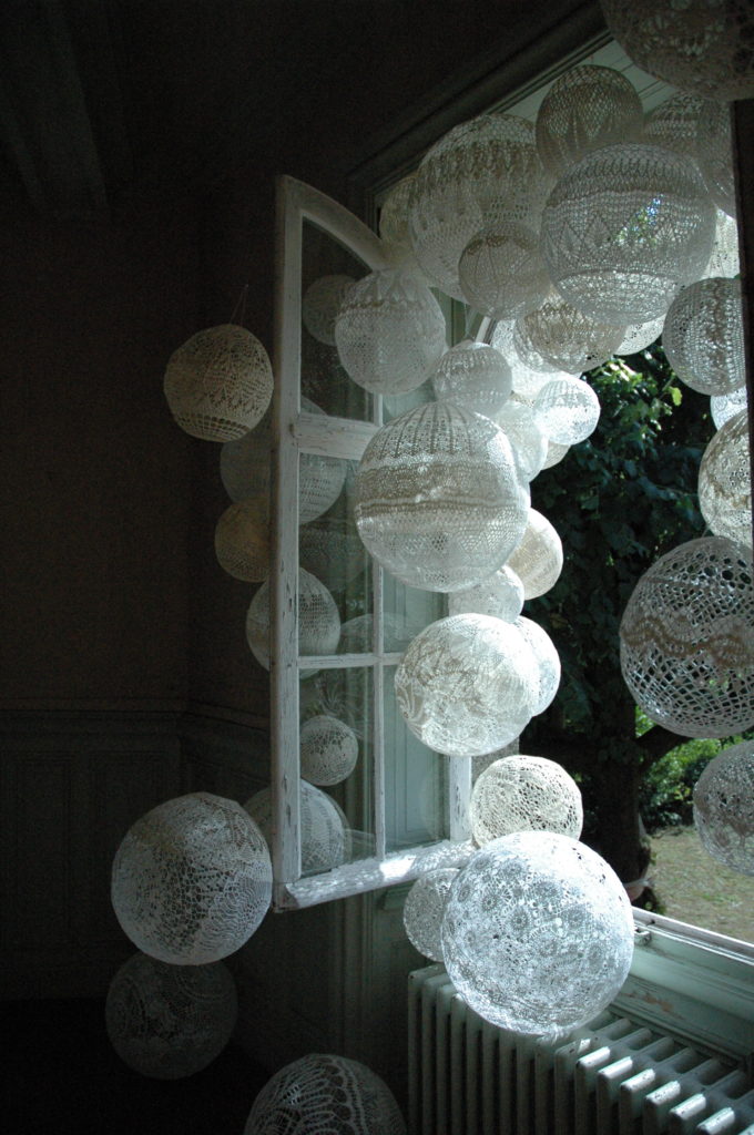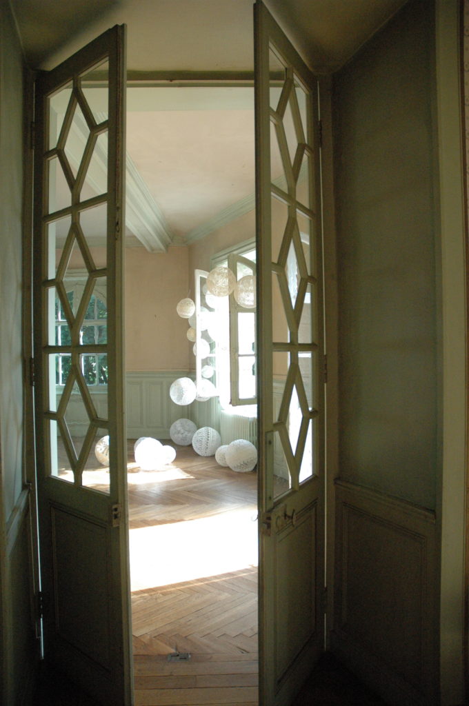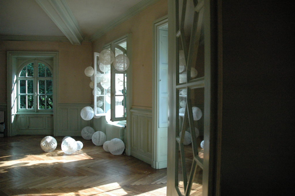 En 2018, J’ai eu envie de mettre en scène, dans cette ancienne bâtisse, une composition de suspensions, une cascade de ballons, comme un débordement dans cette immense piece de reception. Une ode à la fête.